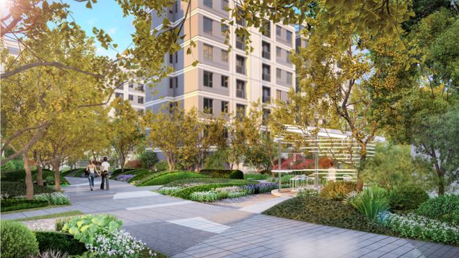 立足南北双片区近50000 ㎡大盘景观空间,森兰·航荟名庭规划了以300m大中轴,10000 ㎡ 中心景观区为核心的多组团丰富空间。